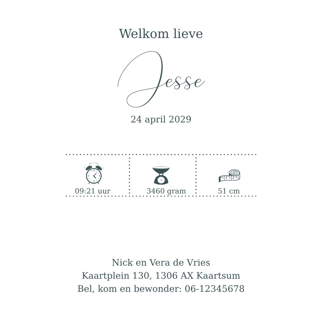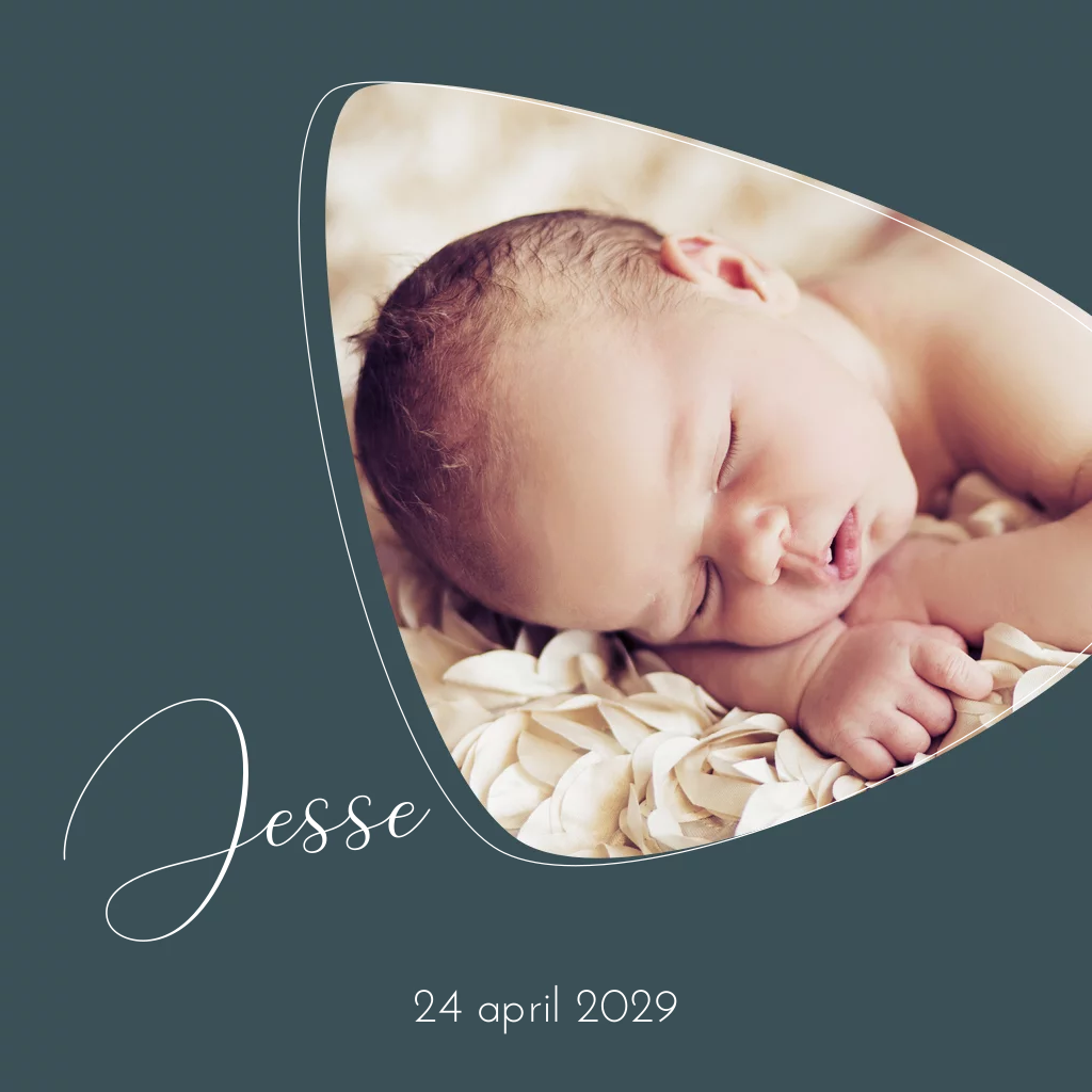 Modern geboortekaartje voor een jongen, donker groen met ruimte voor een eigen foto en foliedruk. (23468)