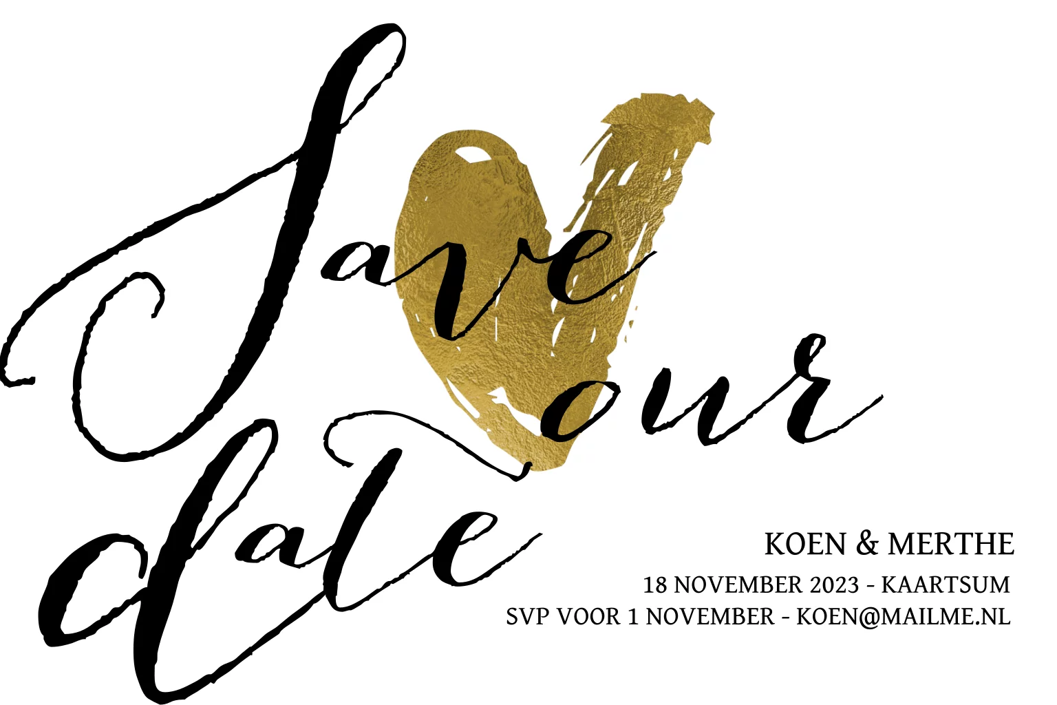 Hippe save the date kaart met goudkleurig hart. (6463)