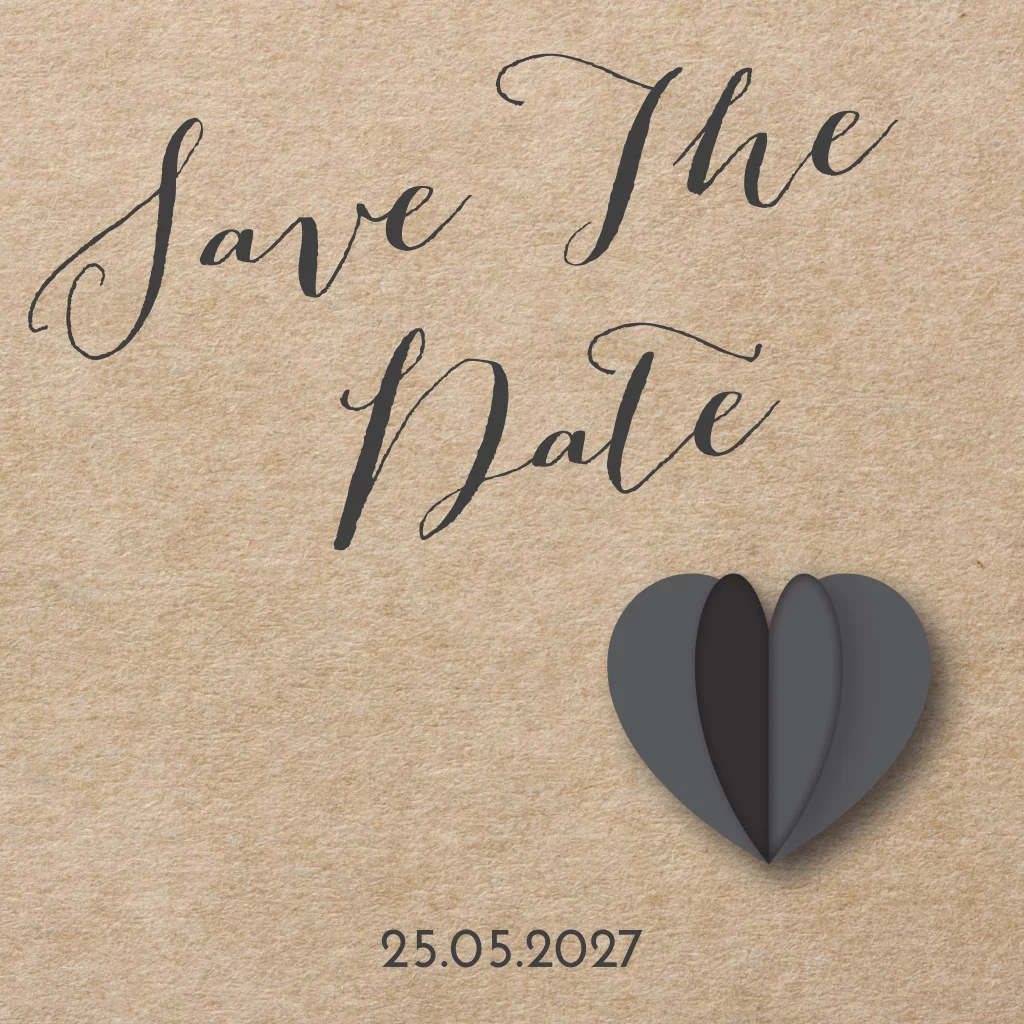 Moderne save the date kaart huwelijksdag met kraft en bijzonder hart. (6447)