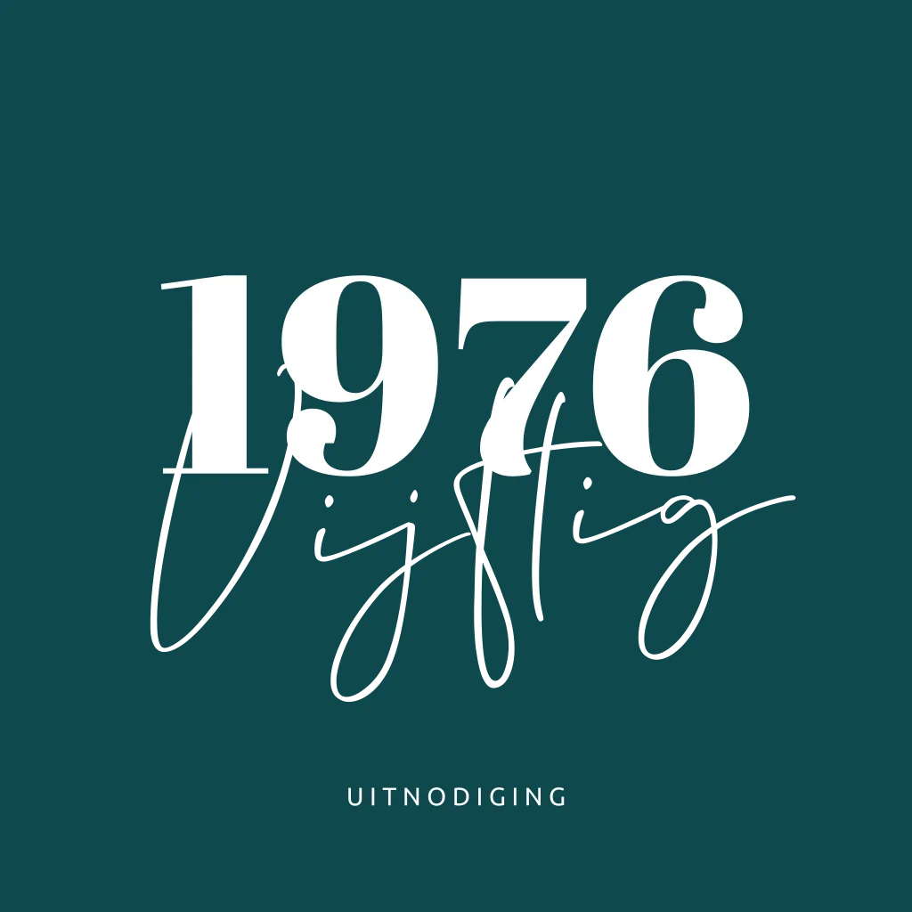 Je vijftigste verjaardag mag gevierd worden! Kies voor deze stijlvolle verjaardagsuitnodiging met goudfolie foliedruk en groot het geboortejaar jaartal 1976. (24094)