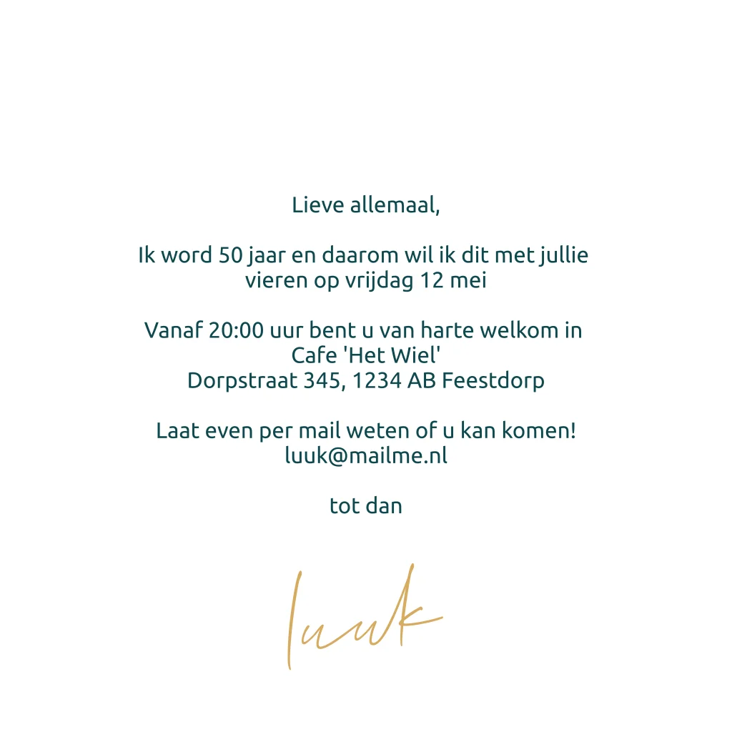 Stijlvolle uitnodiging verjaardag 50 jaar goudfolie