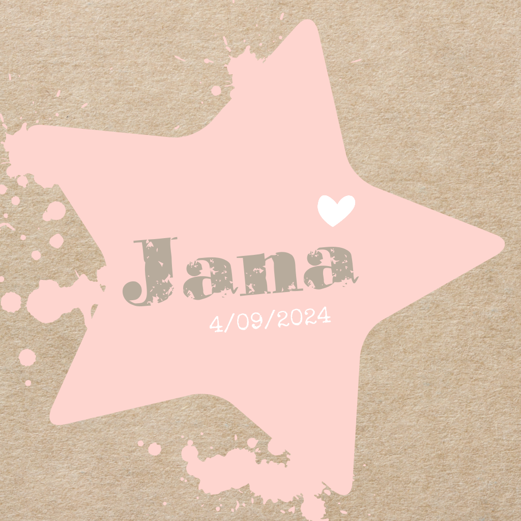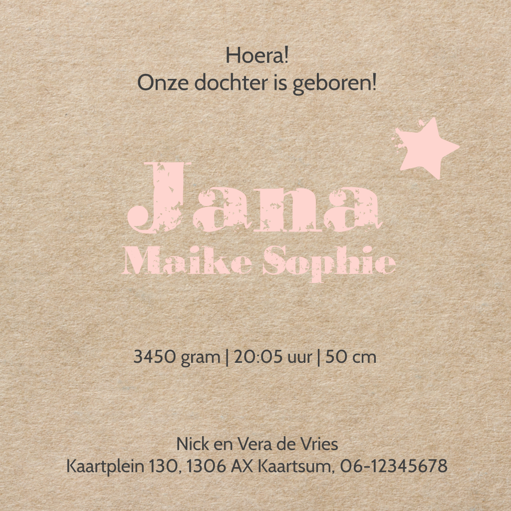 Stoer hip geboortekaartje meisje bruin karton met paarse ster