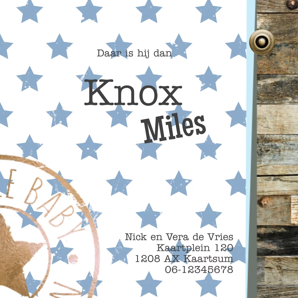 Geboortekaart voor jongen steigerhout en stempels stoer