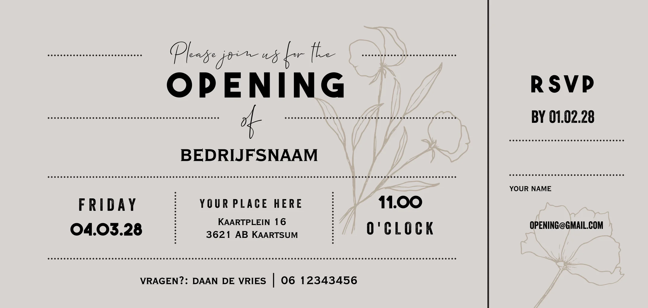 Ticket vorm uitnodiging opening bedrijf bedrijfspand