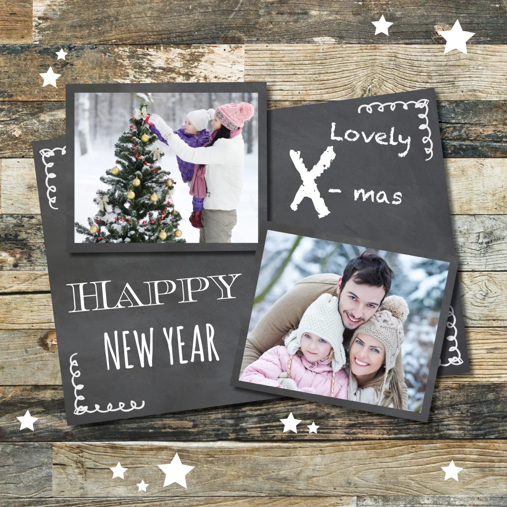 Foto collage kerstkaart hout en krijtbord. (2102)