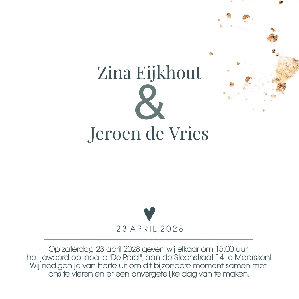 Trouwkaart botanische sfeer met goudfolie
