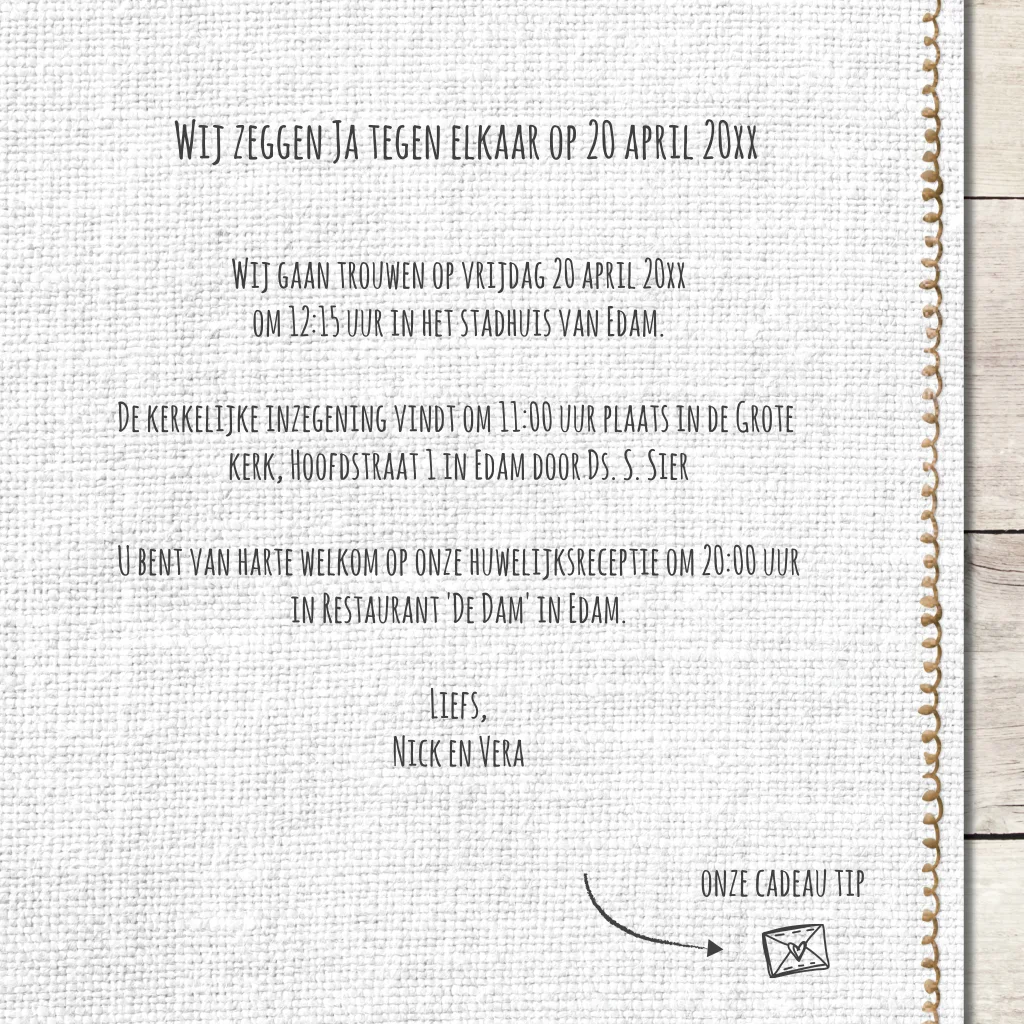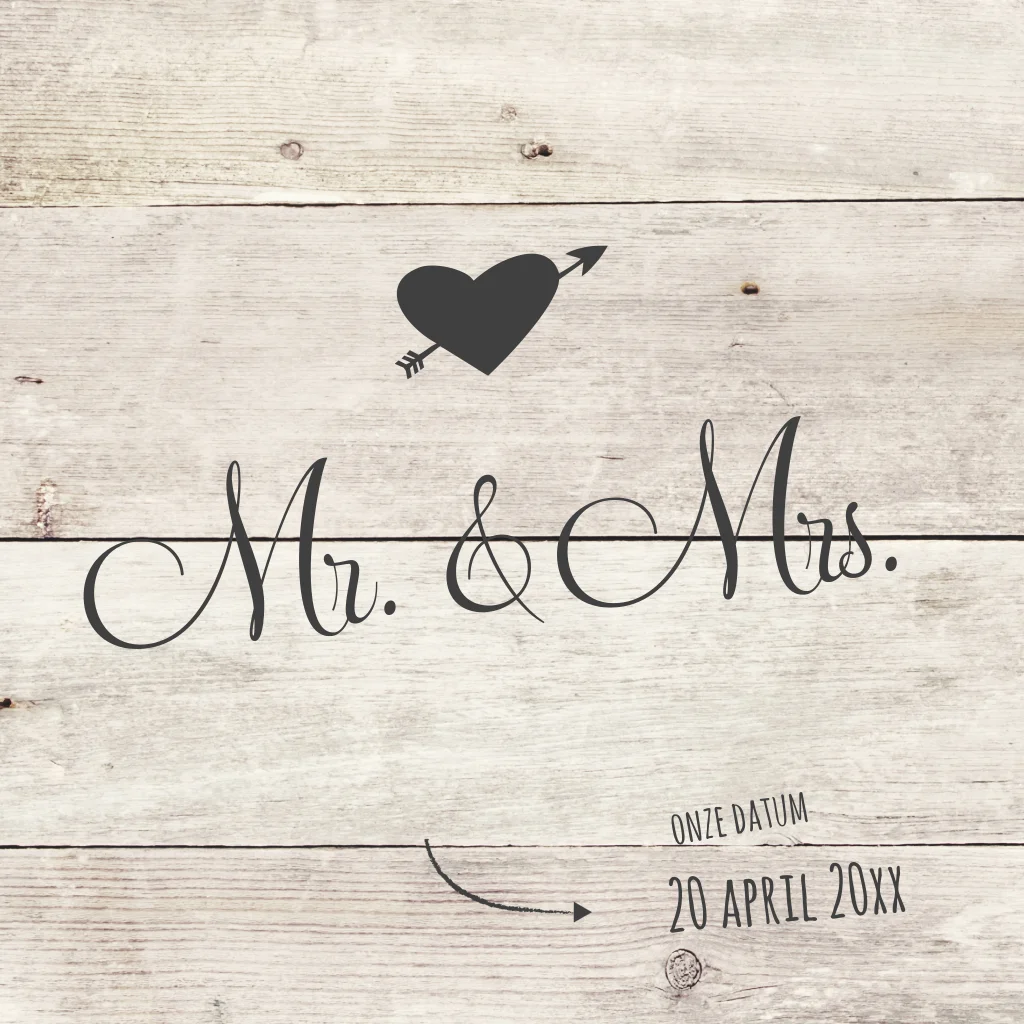Hippe trouwkaart Mr en Mrs met hout en linnen