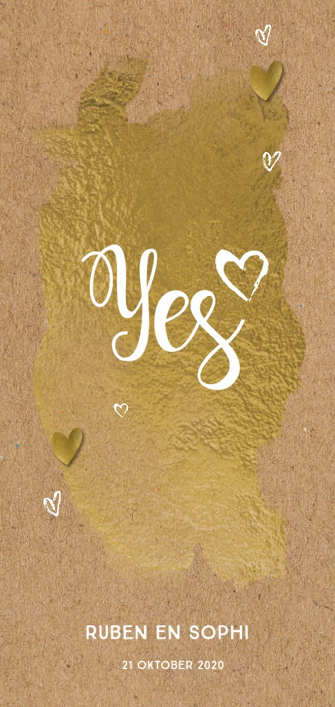 Hippe langwerpige trouwkaart met goudkleur kraft en tijdlijn. (6446)