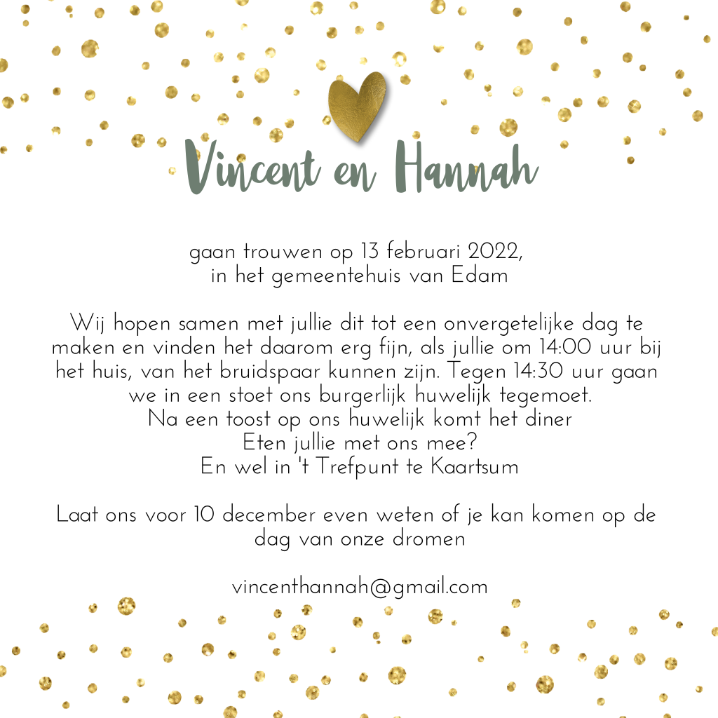 Trouwkaart spetters en gouden hart