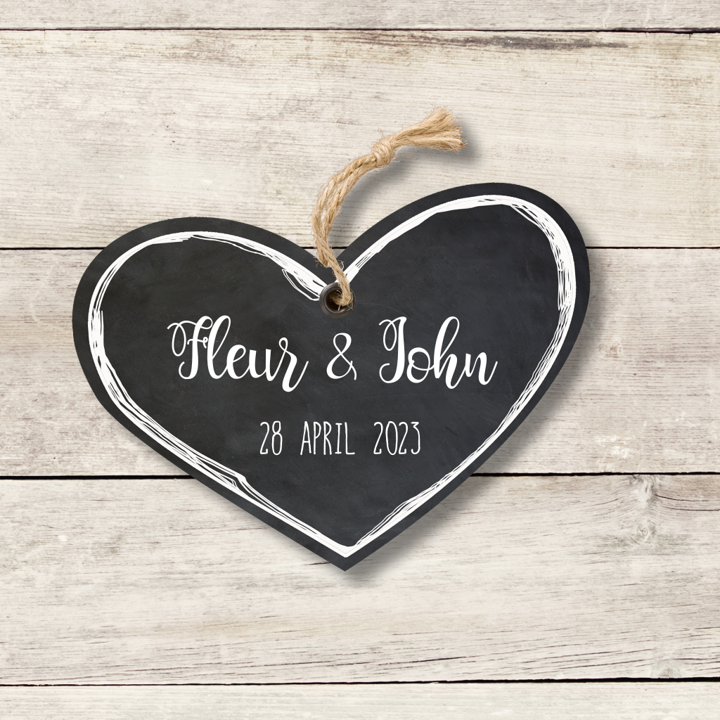 Wij zijn getrouwd trouwkaart met hout en hart van krijtbord. (6454)