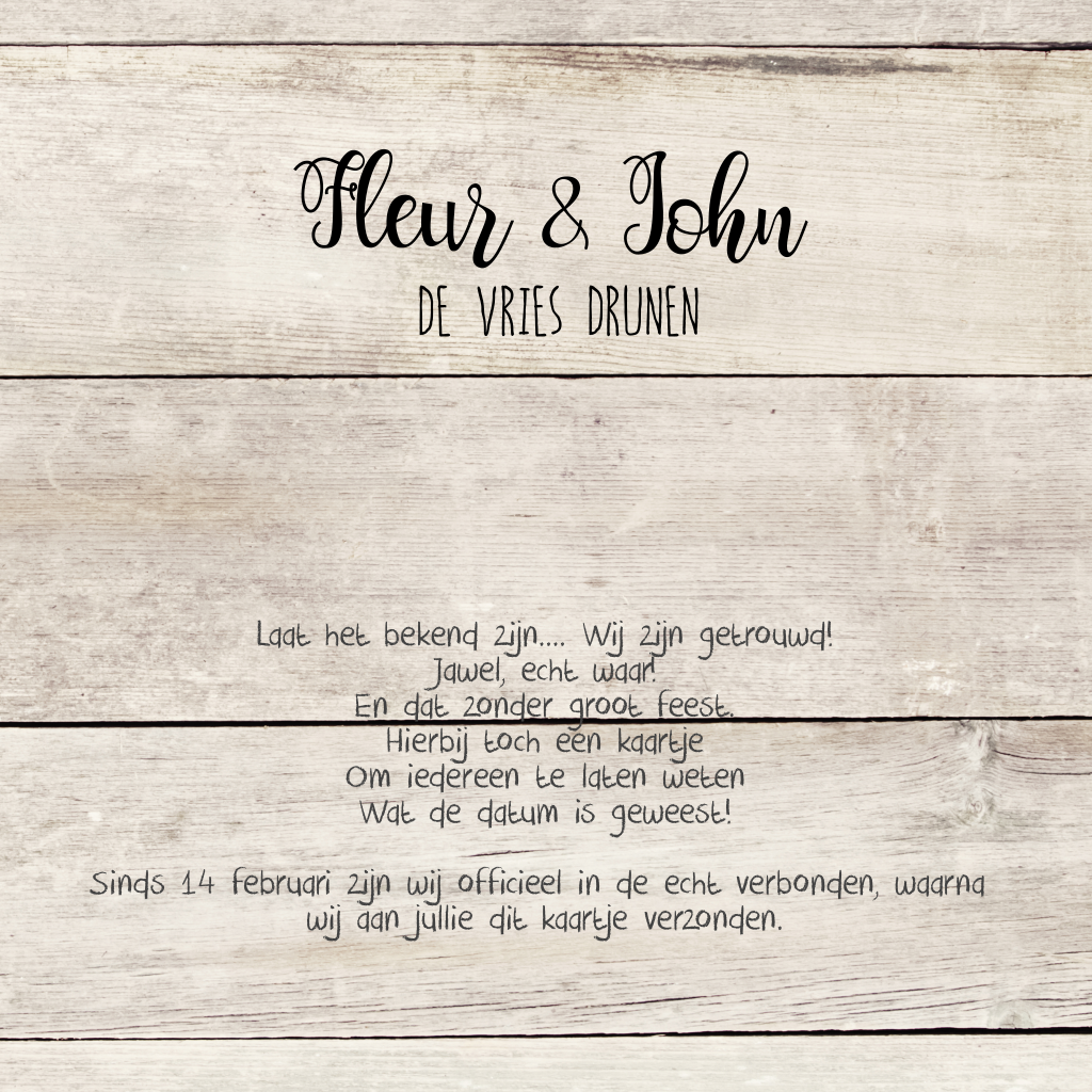 Trouwkaart wij zijn getrouwd met hout en hart van krijtbord