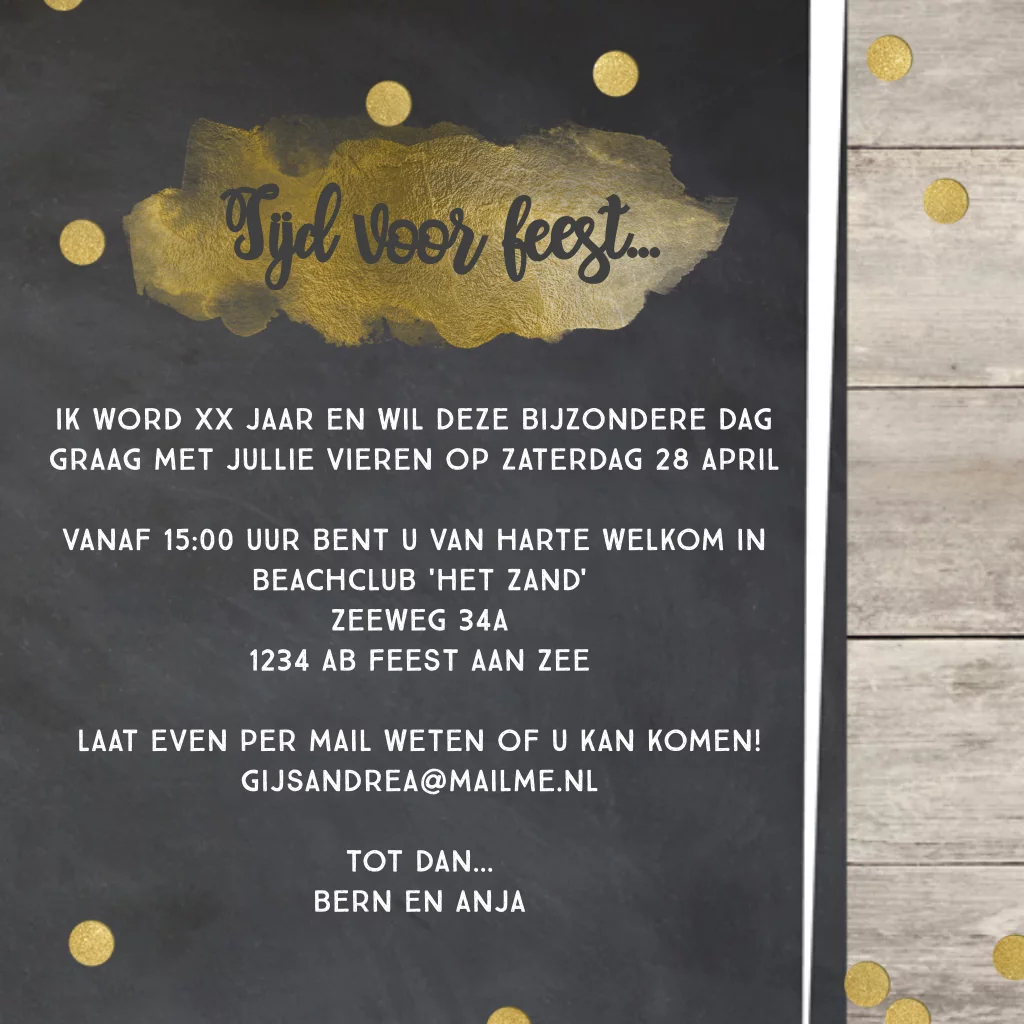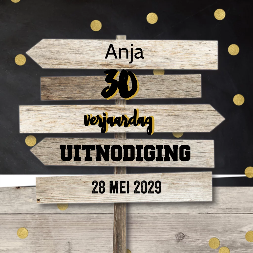 Uitnodiging 30 jaar verjaardag met houten borden en confetti