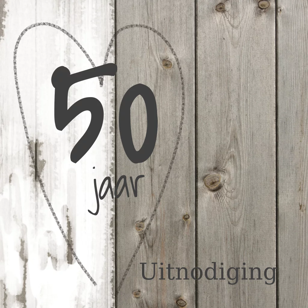 Sarah gezien....? Uitnodiging voor een vijftigste 50e verjaardag met hout en wit hart. (2033)