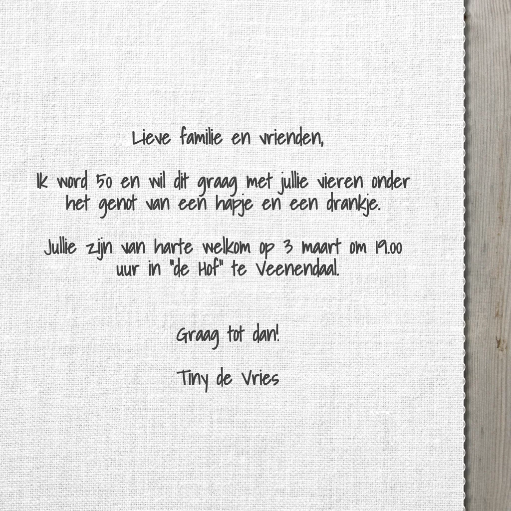 Uitnodiging voor een Sarah 50ste verjaardag met hout en hart
