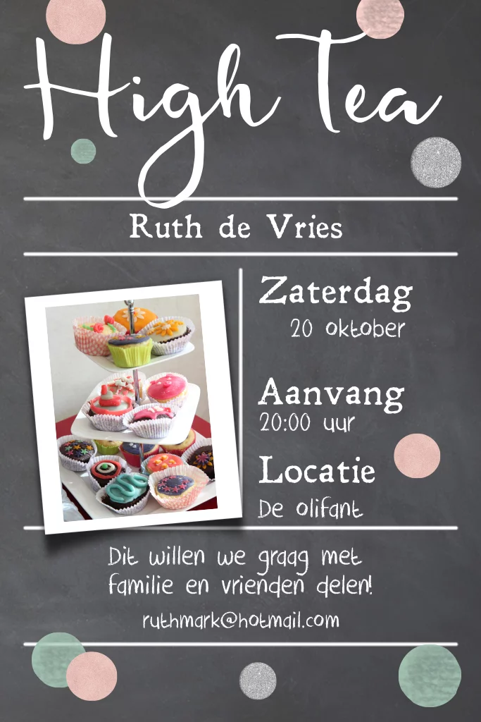 Uitnodiging high tea met rose aquarel ballon typografie. Alles staat los op dit kaartje en is te bewerken. (5242)