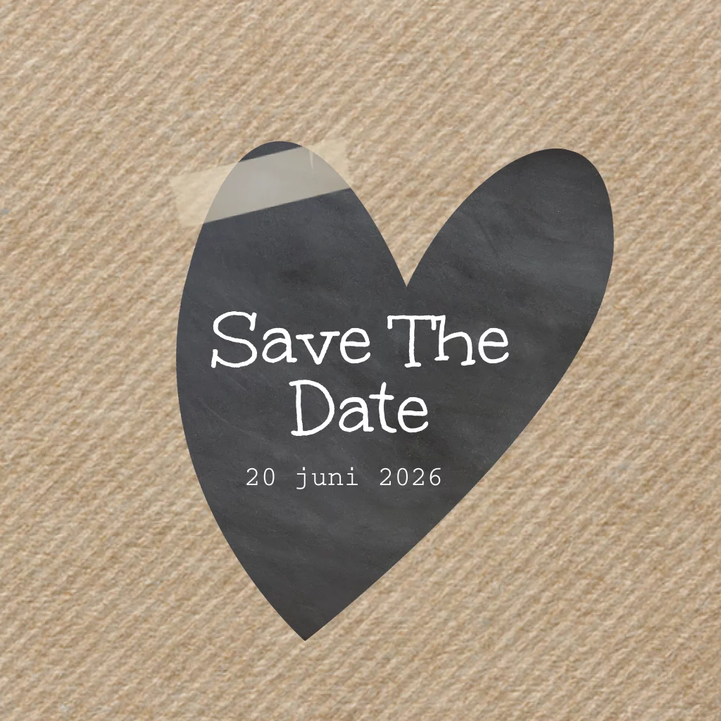 Moderne Save The Date trouwkaart met hart van krijtbord. (6448)