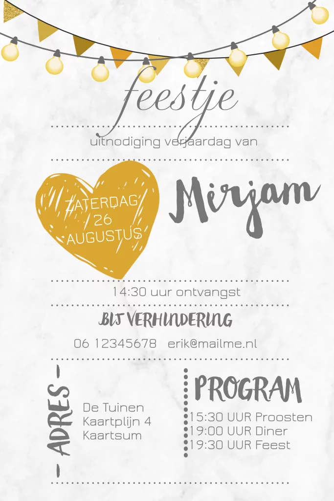 Uitnodiging verjaardag op marmer