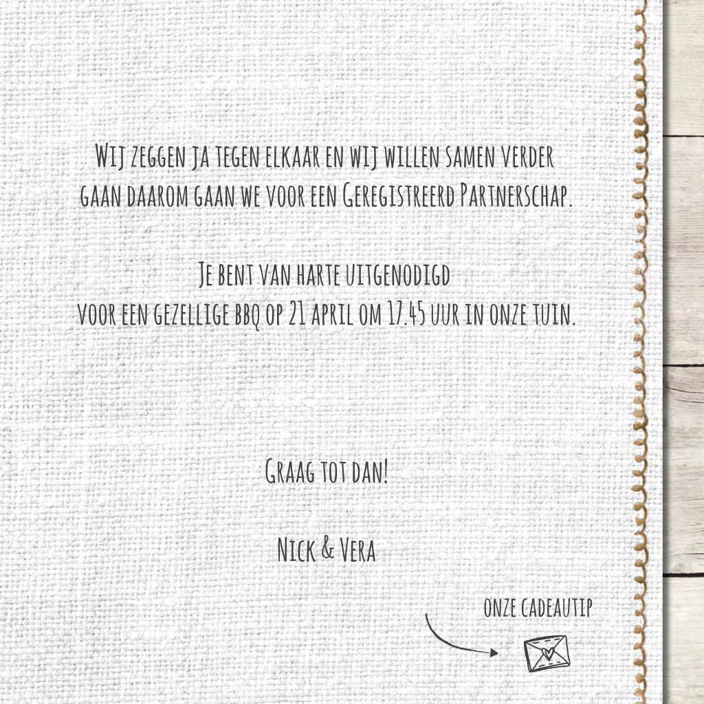 Uitnodigingskaart geregistreerd partnerschap