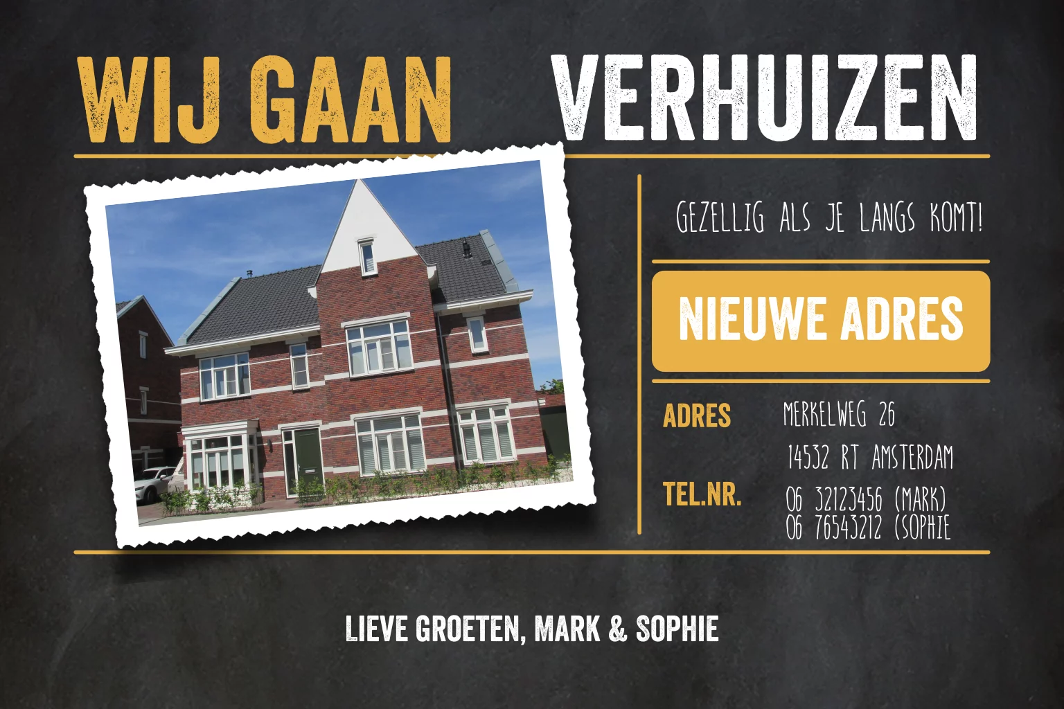 Modern en hip verhuisbericht met krijtbord achtergrond. (22573)