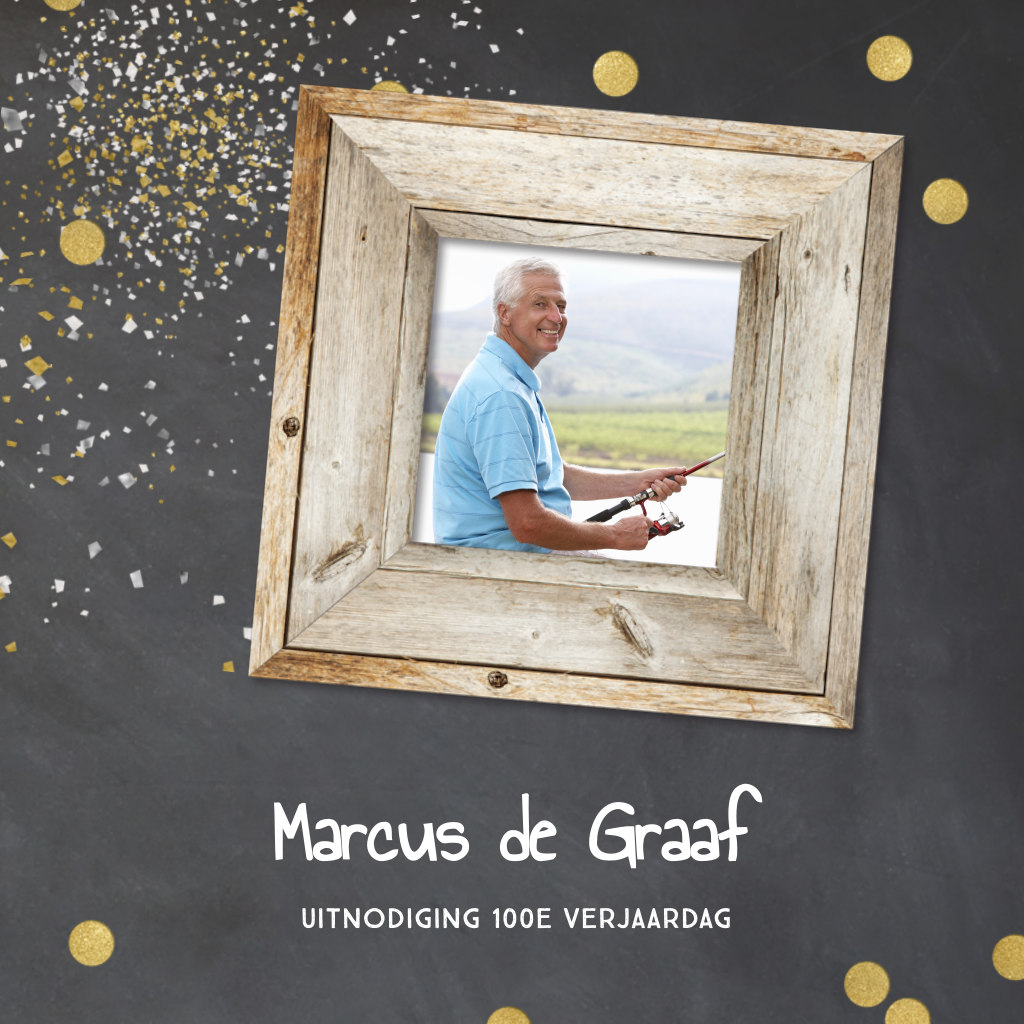 Uitnodiging 100e verjaardag met foto en confetti