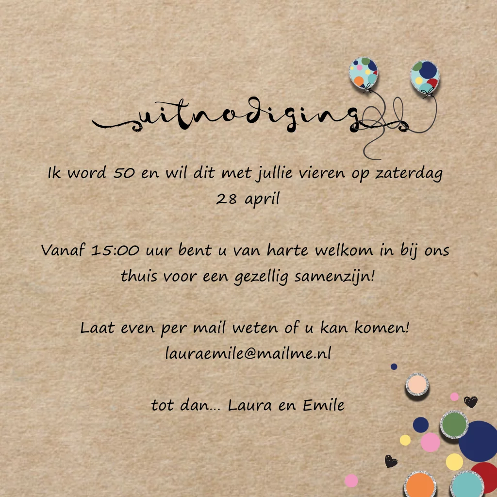 Leuke uitnodiging 50 jaar verjaardag met ballonnen. (6432)
