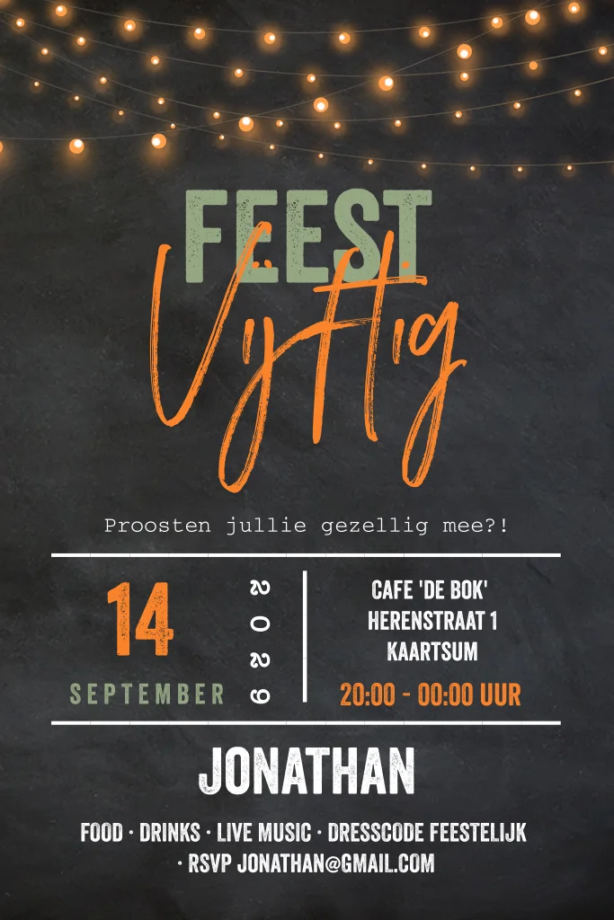 50 jaar uitnodiging krijtbord en lampjes 50 jaar