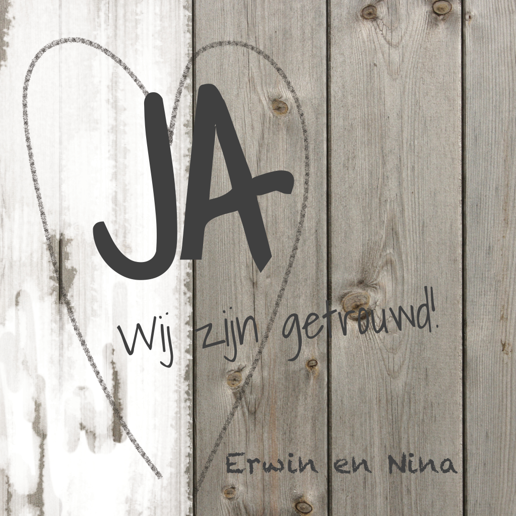 Wij zijn getrouwd trouwkaart met hart en hout