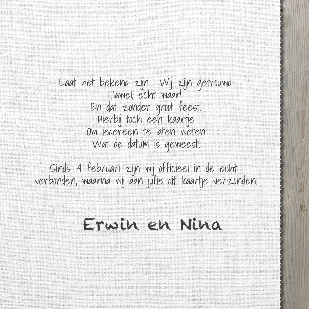 Wij zijn getrouwd trouwkaart met hart en hout Met linnen binnenzijde. (2035)