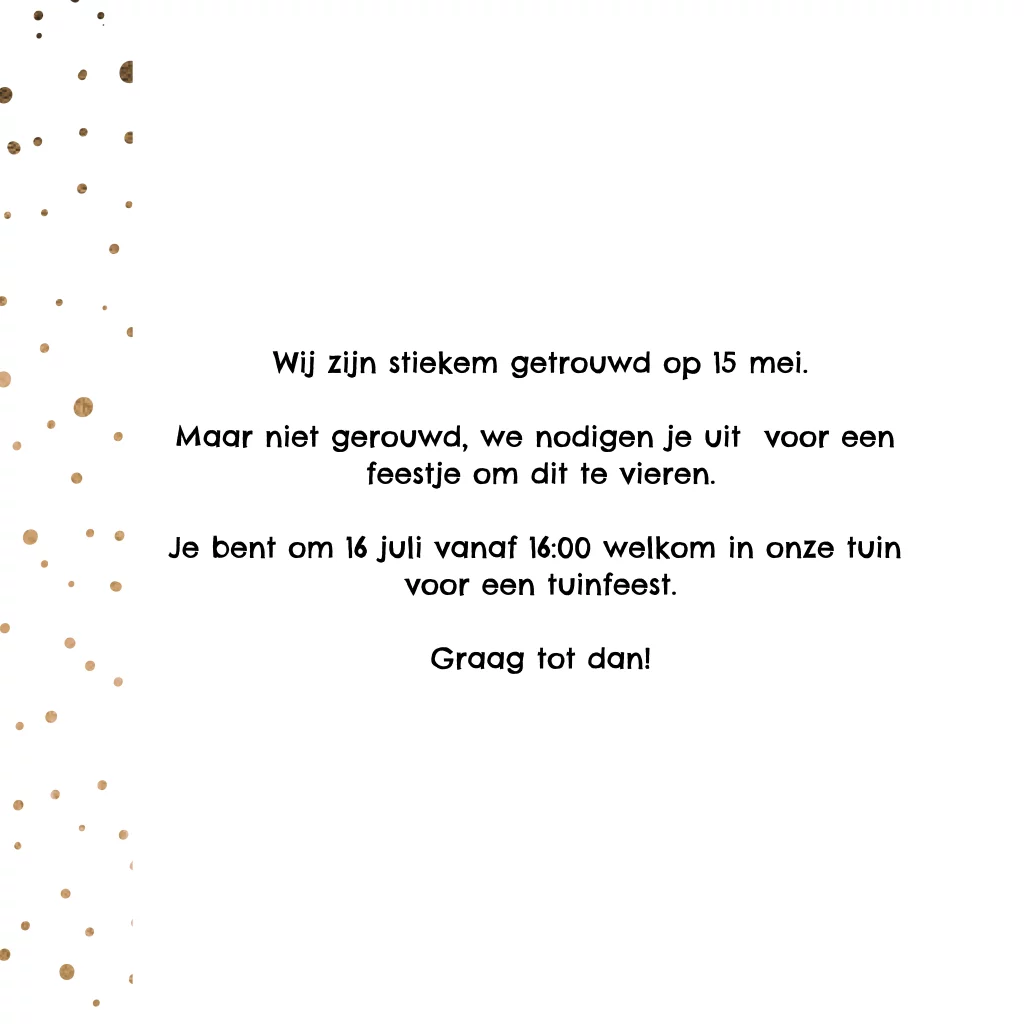 Wij zijn getrouwd trouwkaarten uitnodiging met koperen confetti en houten wegwijzer. Witte achtergrond. (2639)
