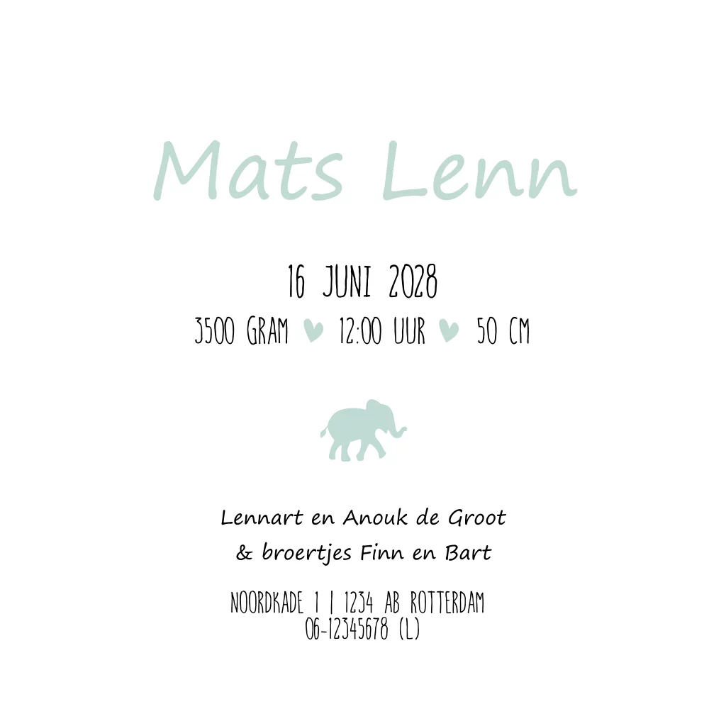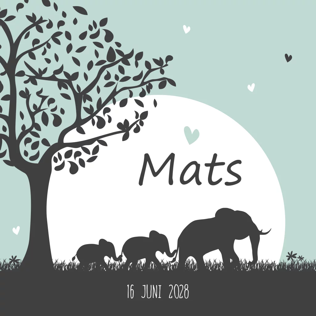 Geboortekaartje voor een 3e kindje met 3 olifantjes op een rij. een broertje met olifantjes en een maan. (21926)