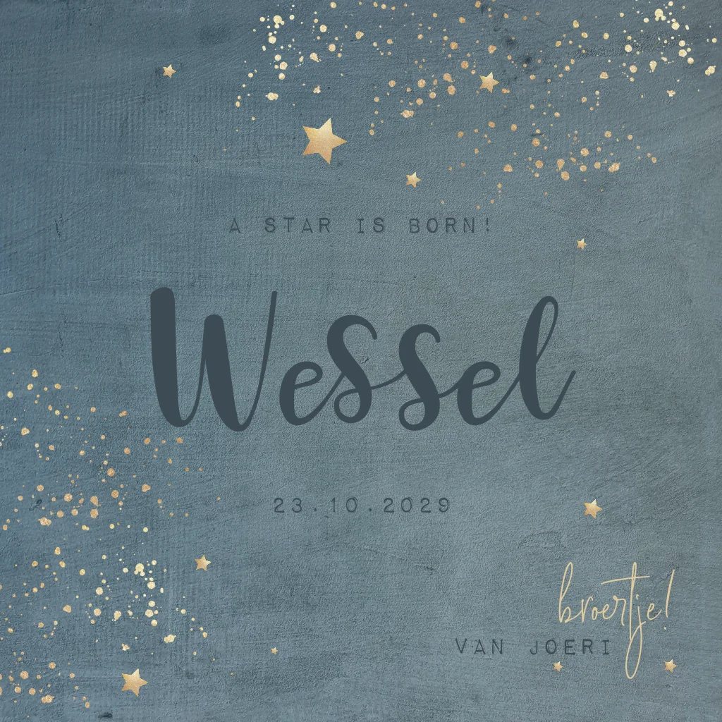 Een stoer en jongens geboortekaartje broertje. Doordat er ruimte in het ontwerp is voor een leuke tekst kun je hier ook 'broertje' toevoegen en de naam van het broertje. (20588)