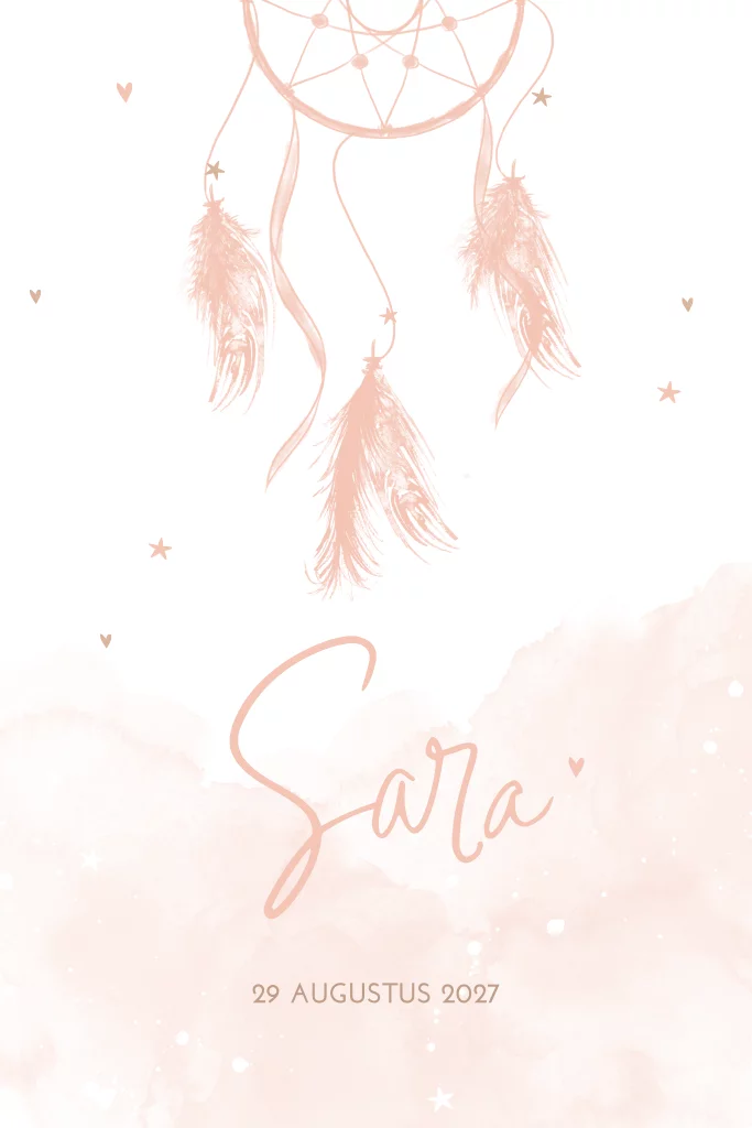 Geboortekaartje meisje bohemian meisje met dromenvanger. (21265) Geboortekaartje Sara
