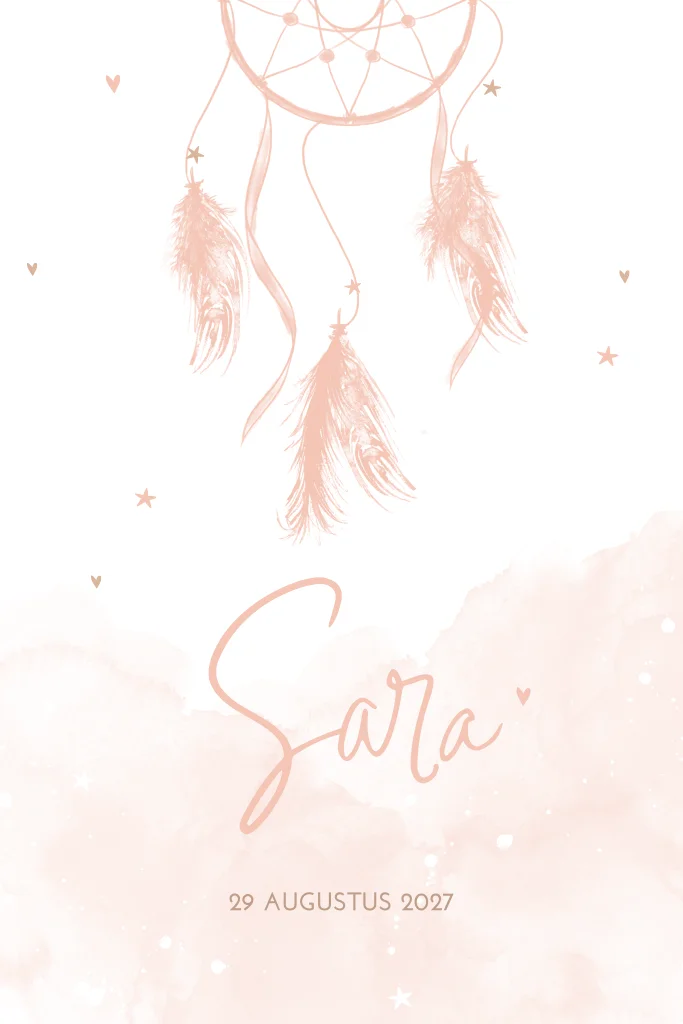 Geboortekaartje meisje bohemian stijl met dromenvanger met veertjes (21265) Geboortekaartje Sara
