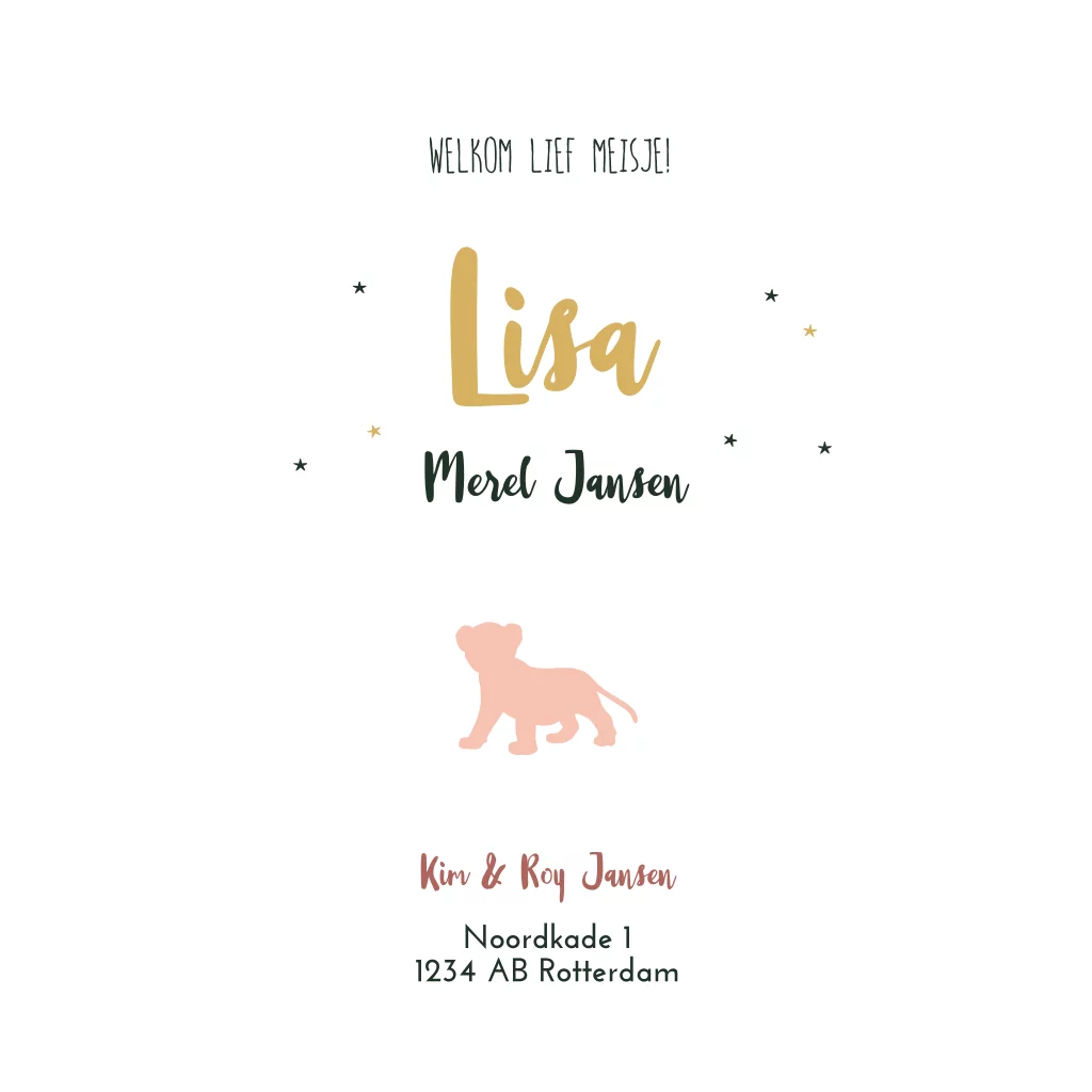 Jungle geboortekaartje meisje met giraffe en leeuw