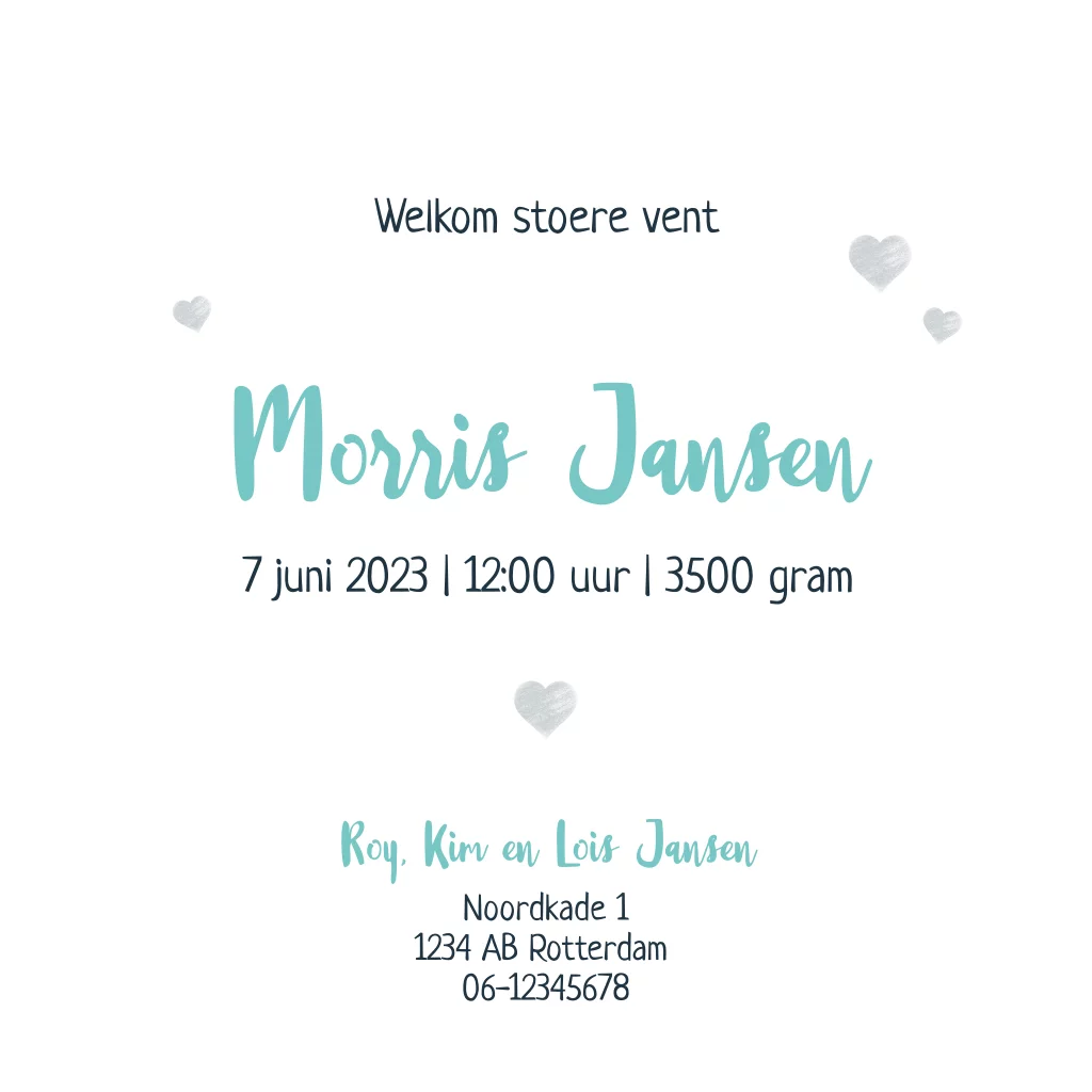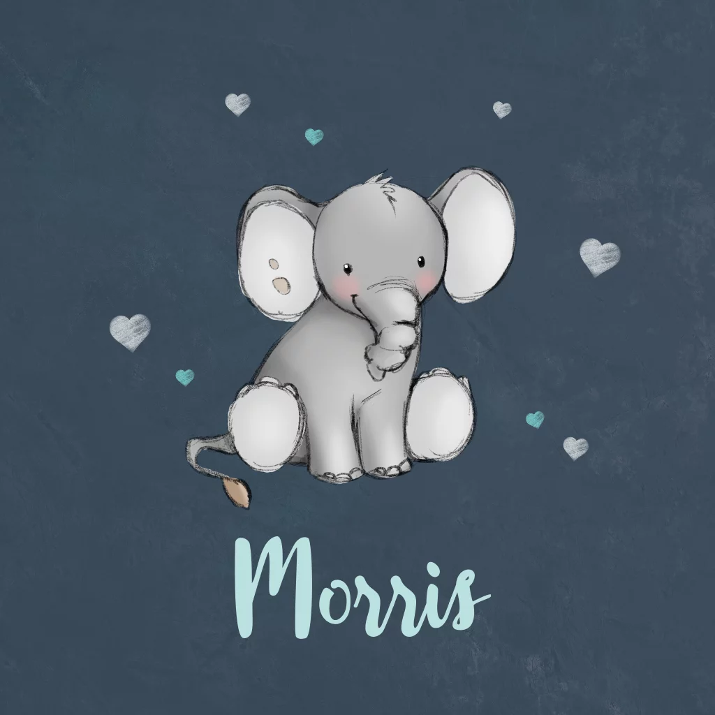 Leuk geboortekaartje voor een jongen met olifant en hartjes