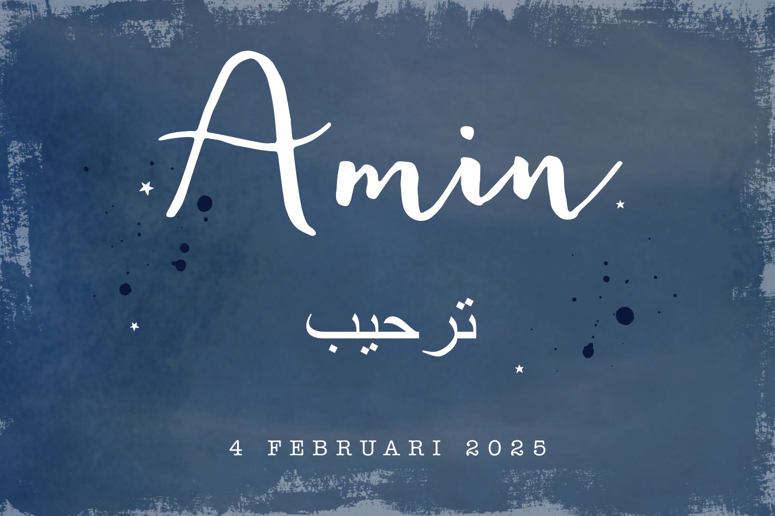 Stoer arabisch geboortekaartje jongen in het blauw met ok ruimte voor naam In Arabische tekst (21266)