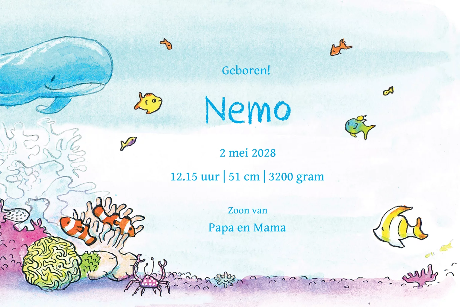 Geboortekaartje Onderwaterwereld met walvis en dolfijnen