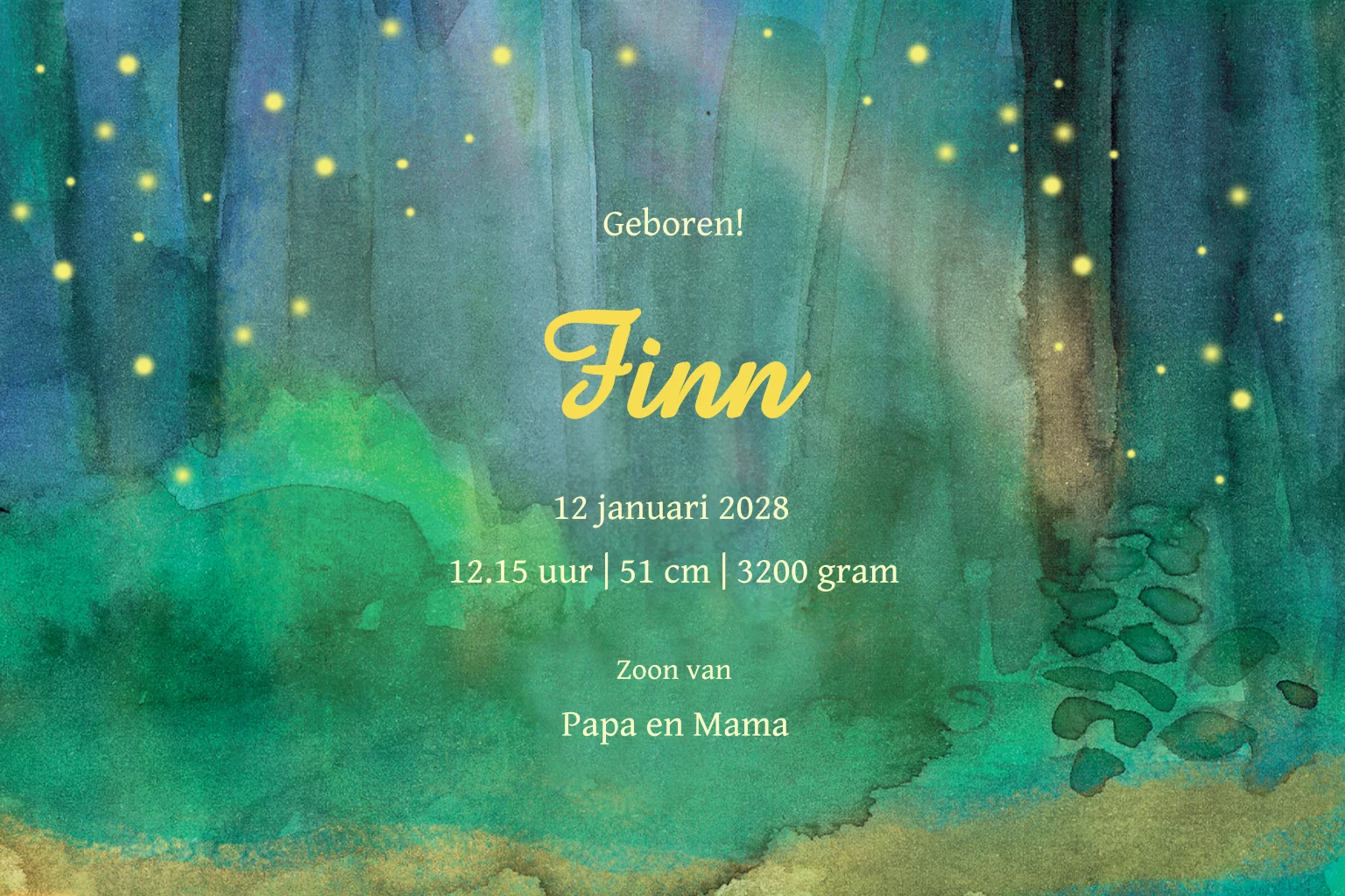 Geboortekaartje jongen vuurvliegjes in sprookjesbos