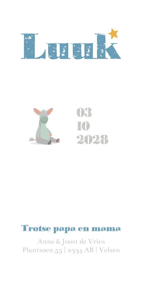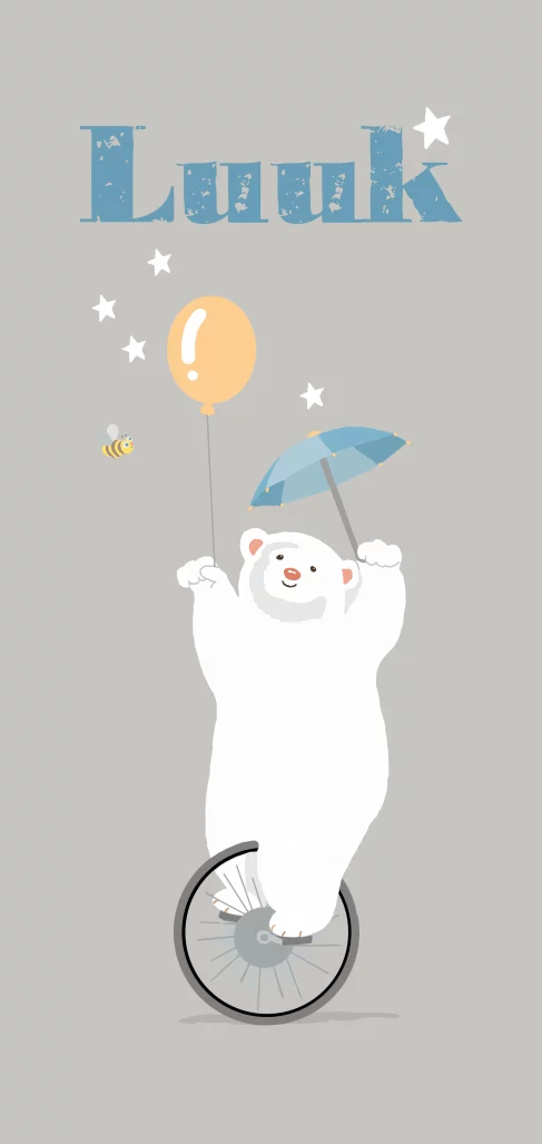 Jongens geboortekaartje met een beertje op een fiets. (24522)