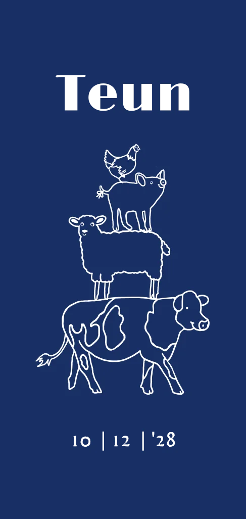 Geboortekaartje jongen met boerderijdieren op een stapel