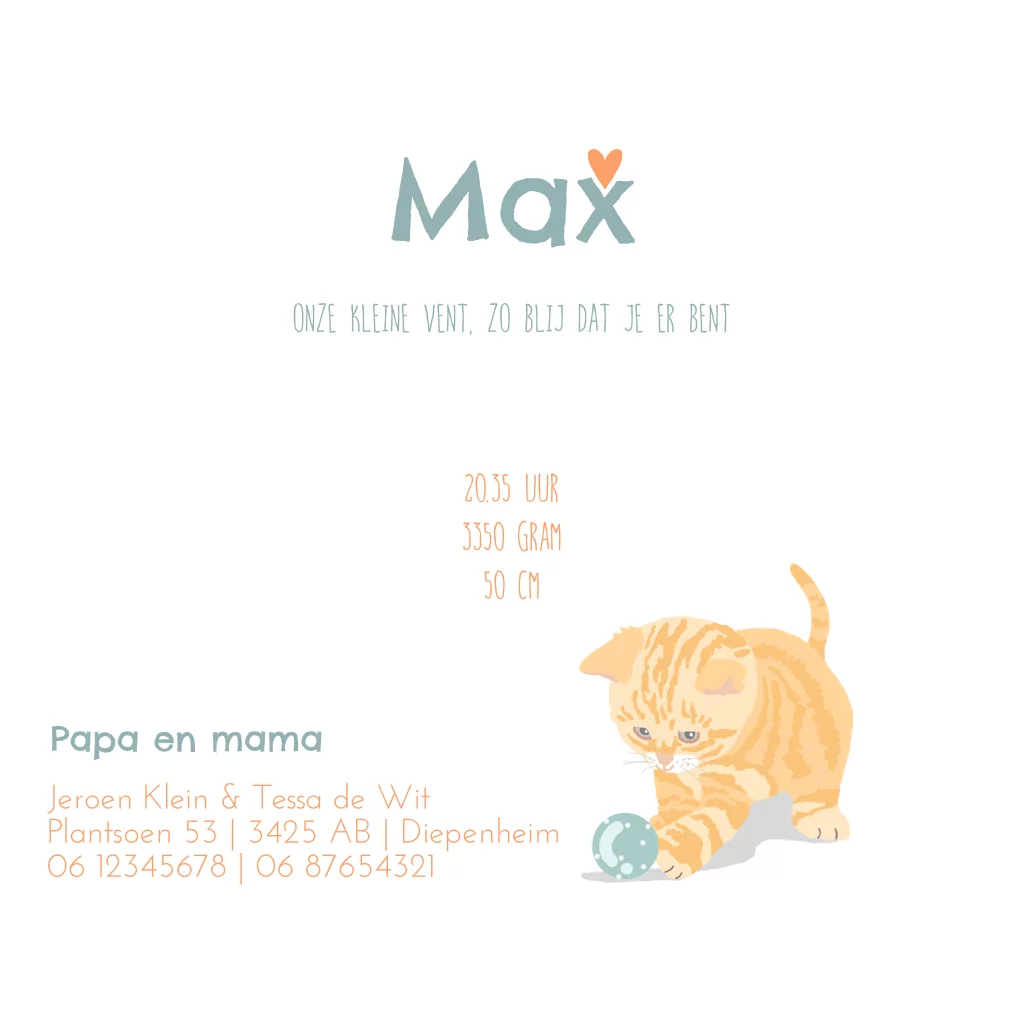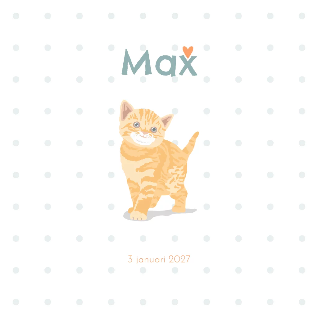 Geboortekaartje voor een jongetje met lief getekende kitten