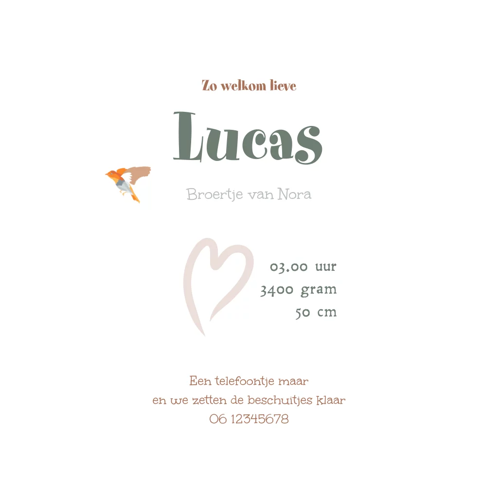 Jongens geboortekaartje met slapend beertje in mandje met paddenstoel, sneeuwklokjes en vogeltje