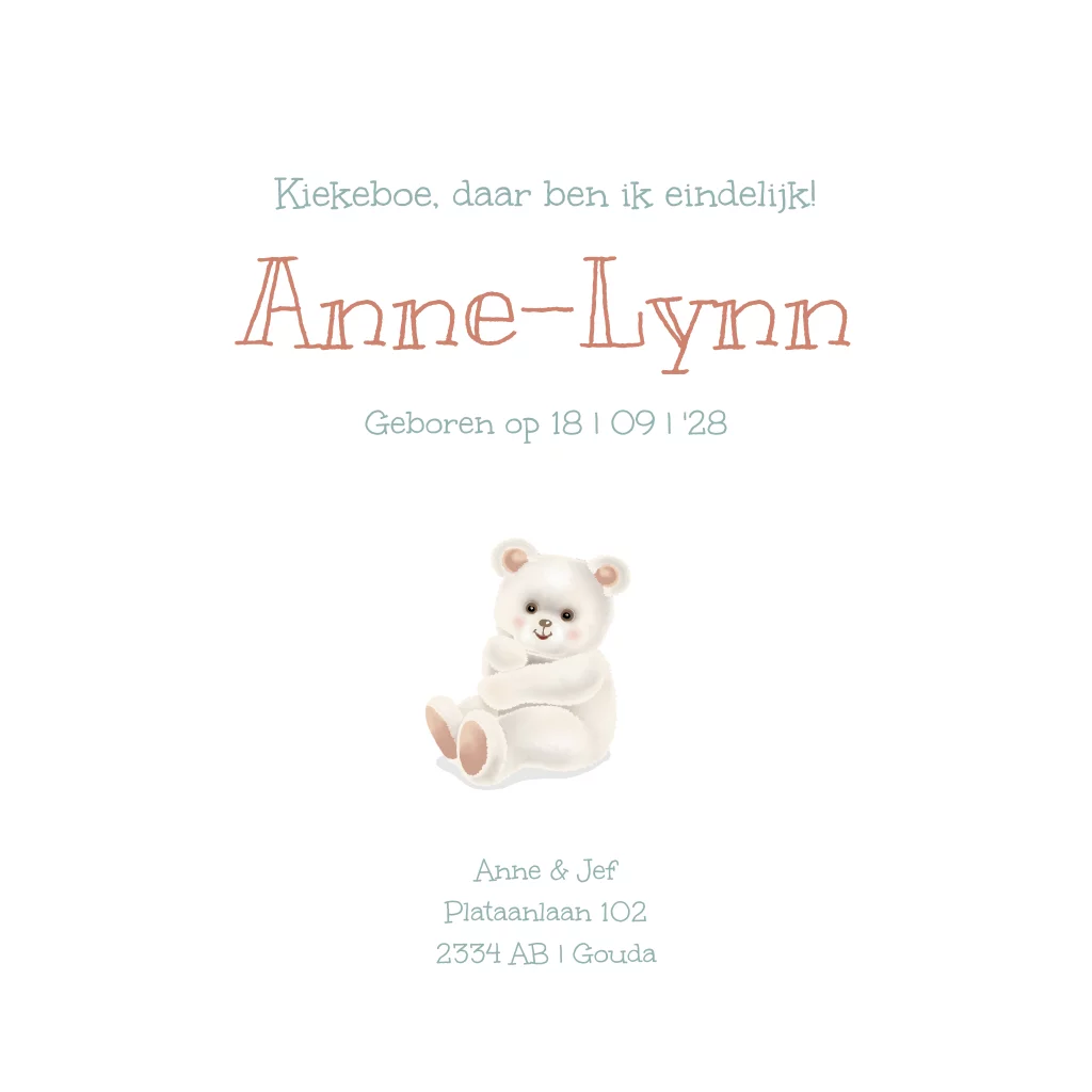 Geboortekaartje meisje wit beertje met bloemen