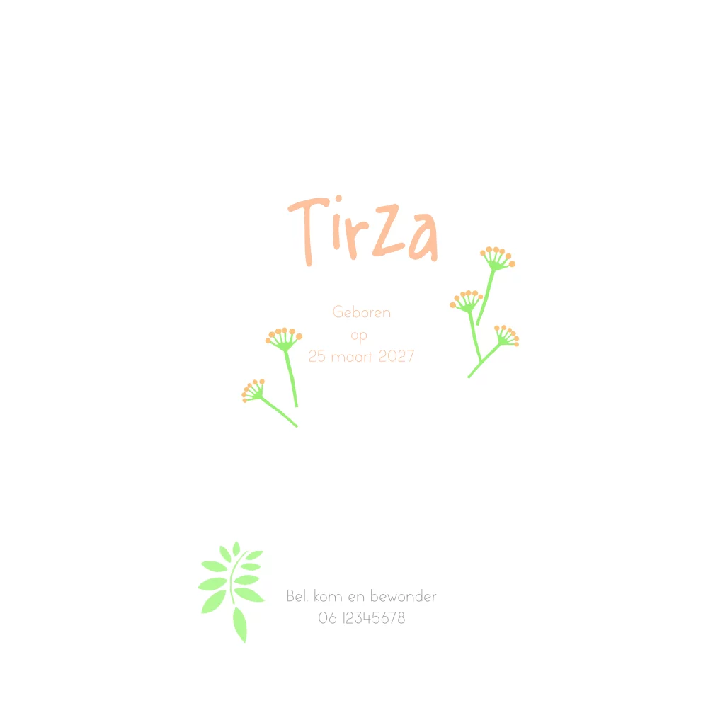 Meisjes geboortekaartje met een optocht van verschillende vrolijke diertjes. Een alpaca, struisvogel, varken, en een kipje. (24173)
