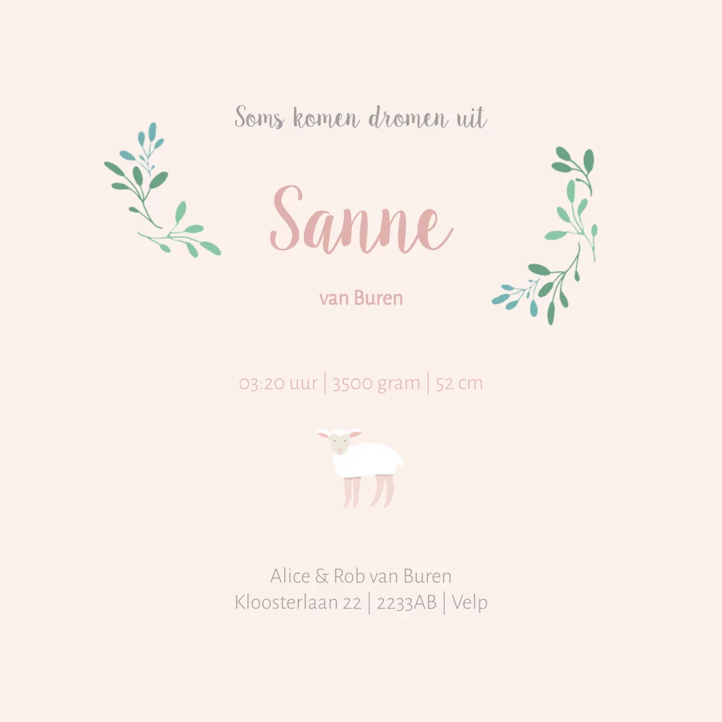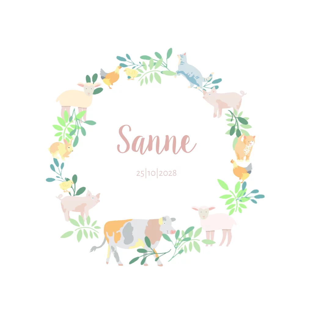 Meisjes geboortekaartje met boerderij dieren in pastel tinten