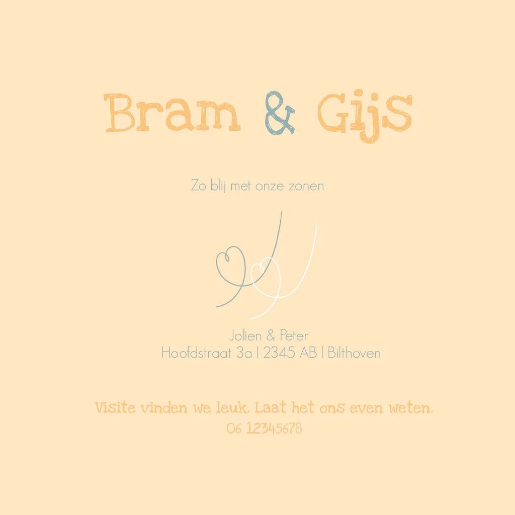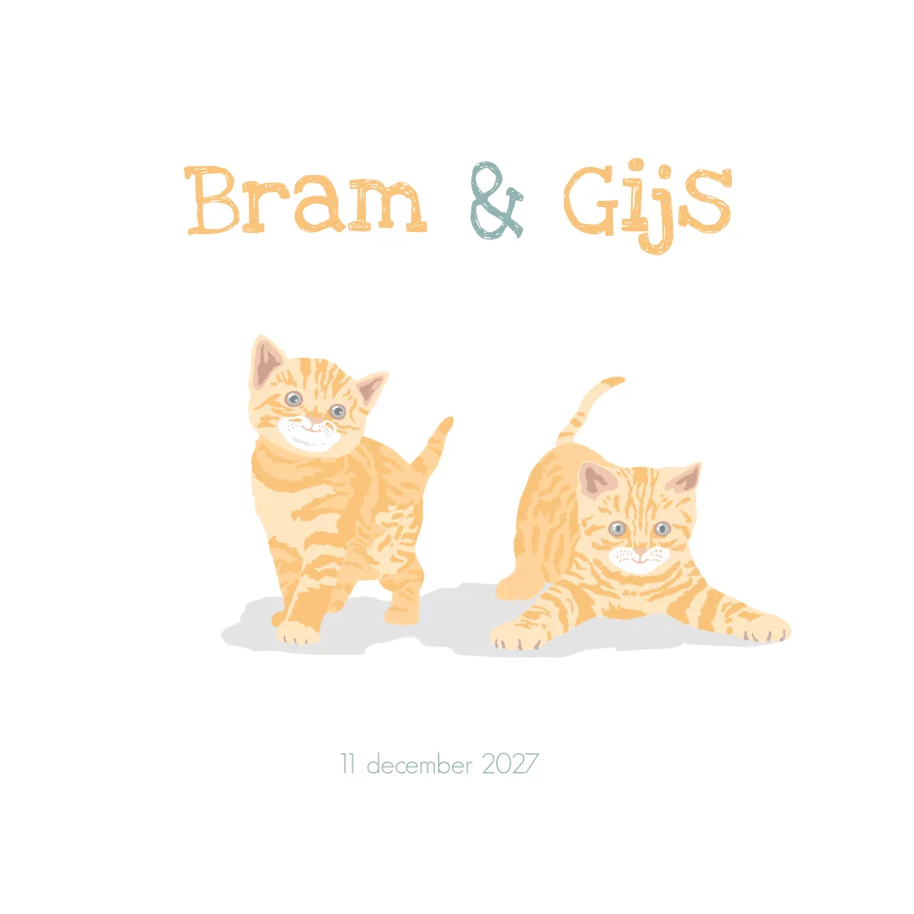 Geboortekaartje voor een tweeling of 2e kindje met kittens