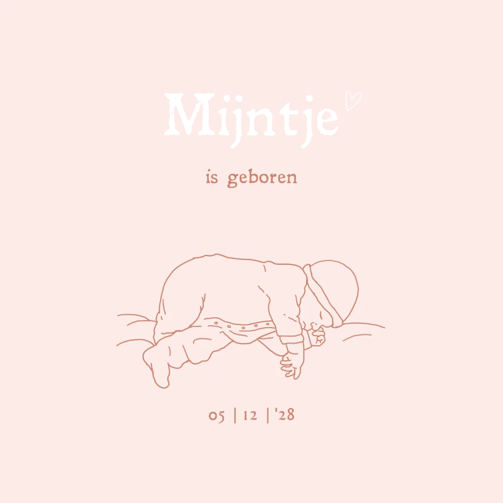 Geboortekaartje voor een meisje klassiek met lijntekening baby