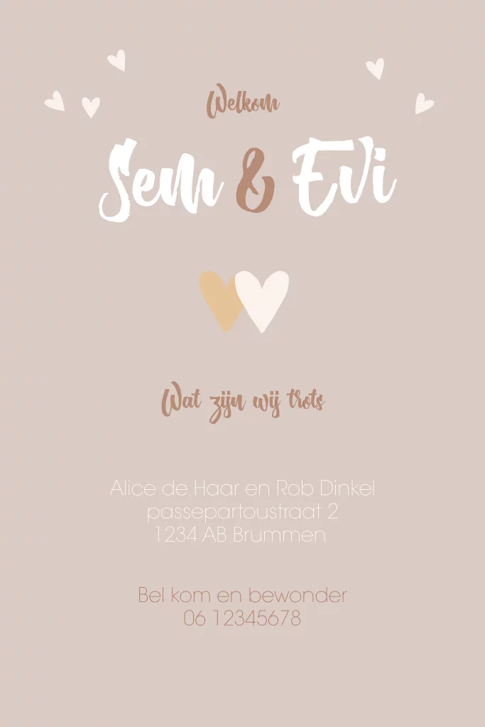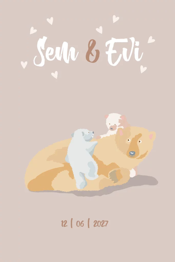 Geboortekaartje voor een tweeling met beer met 2 jongen