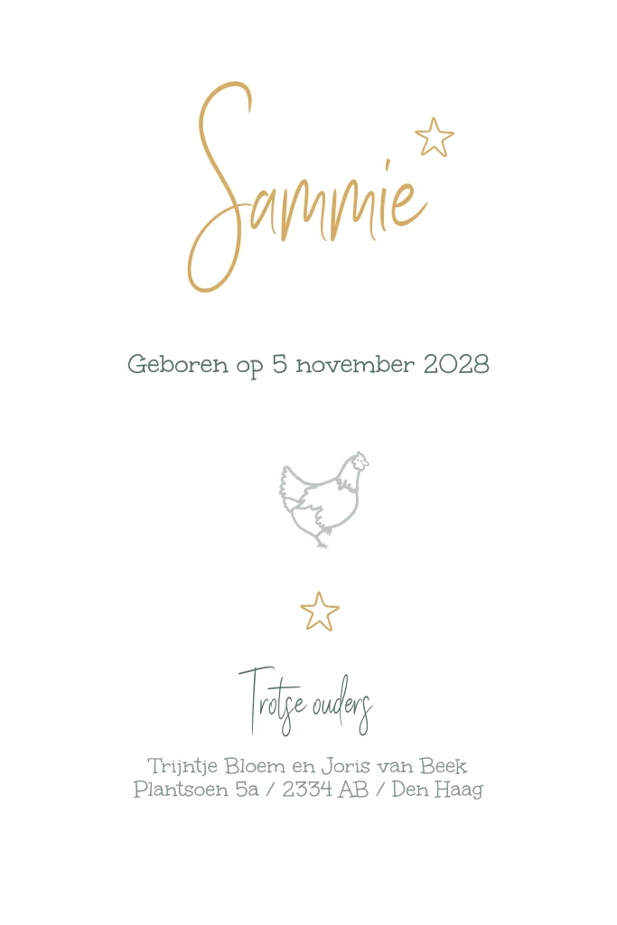 Geboortekaartje Jongen met Varkentje en kipje
