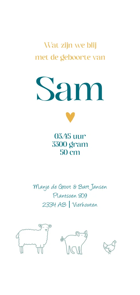 Geboortekaartjes dieren van de boerderij met goudfolie